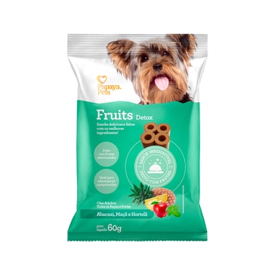 Petisco fruits detox abacaxi, maçã e hortelã cães adultos papaya pets - 60 g