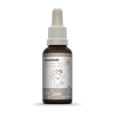 O Bio Florais Ansiedade é composto por Genai, Nivus, Alba, Alegria, Jolie e Amel, essências florais que promovem o equilíbrio emocional nos pets.