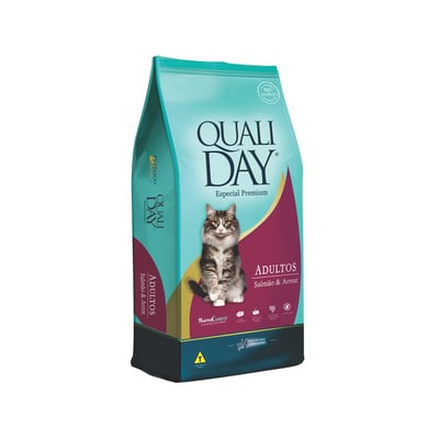 A Ração Qualiday foi cuidadosamente formulada para fornecer uma dieta completa e balanceada para gatos adultos. Este produto não apenas atende às necessidades nutricionais dos felinos, mas também melhora significativamente sua qualidade de vida através de uma alimentação saudável. O sabor salmão, em combinação com o arroz, garante um alimento altamente palatável, tornando-o irresistível para os gatos.