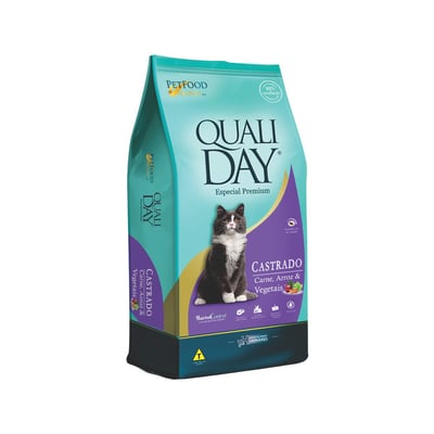 Ração qualiday cat para gatos adultos castrados 1kg sabor carne, arroz e vegetais