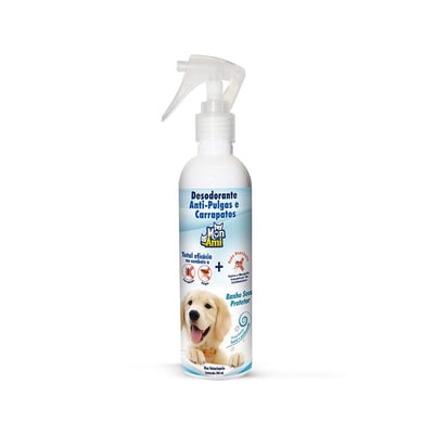 - Combina quatro funções em um único produto: antipulgas, anticarrapatos, repelente de insetos, e desodorante.