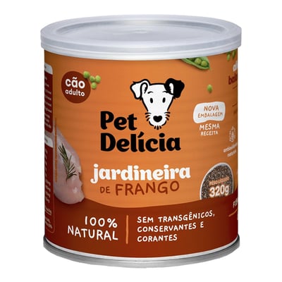 Ração úmida lata pet delícia natural jardineira de frango para cães adultos 320g
