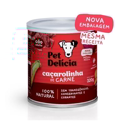 Ração úmida lata pet delícia natural caçarolinha de carne para cães adultos 320g