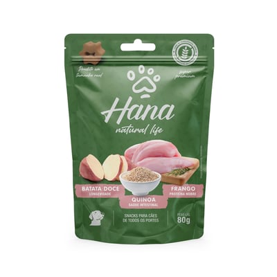 Petisco hana natural life snacks frango, batata doce e quinoa para cães 80g