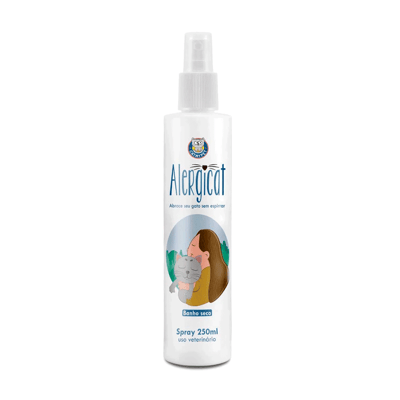 O AlergiCat é um banho a seco especialmente desenvolvido para gatos, projetado para oferecer alívio a pessoas que apresentam alergia a pelos de gato. Sua fórmula poderosa não só hidrata a pelagem dos felinos, como também reduz significativamente a presença de alérgenos, como a glicoproteína Fel d 1, conhecida por desencadear reações alérgicas. Este produto é recomendado por veterinários e alergistas e é seguro para uso em todas as raças de gatos.