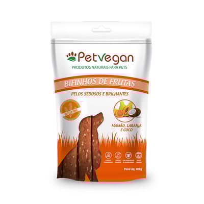 Bifinho petvegan pelos sedosos e brilhantes para cães sabor mamão, laranja e coco