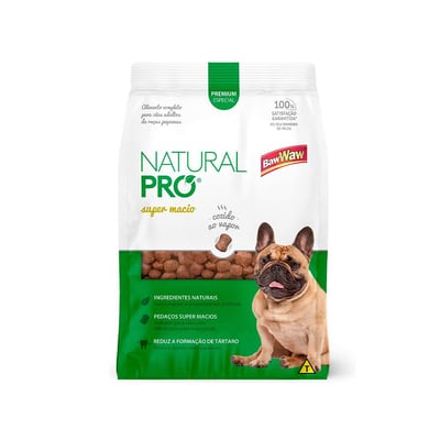 Ração baw waw natural pro super macio para cães raças pequenas sabor carne 400g