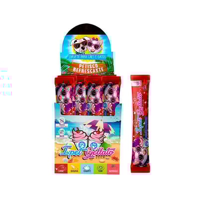 É um petisco em forma de sorvete, feito especialmente para gatos, com sabor carne que ajuda na hidratação e na saúde intestinal.