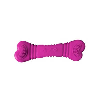 O Brinquedo Furacão Pet Osso Bone Rosa é feito de borracha durável, segura para o uso dos cães.