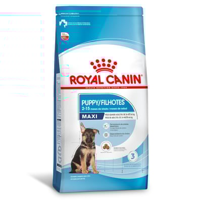 A Ração Seca Royal Canin Maxi Puppy é formulada para garantir que os filhotes de raças grandes (peso adulto entre 26 e 44 kg) tenham um crescimento saudável e equilibrado. Indicada para cães de 2 a 15 meses de idade, esta ração auxilia no desenvolvimento do cérebro graças ao enriquecimento com ácido graxo ômega-3 (DHA), um elemento essencial que apoia o desenvolvimento cognitivo nos primeiros meses de vida.