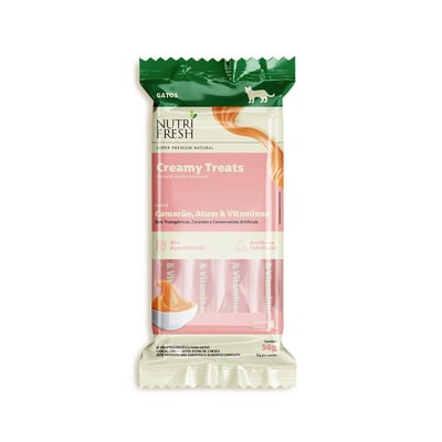 Petisco cremoso nutrifresh creamy treats para gatos camarão, atum e vitaminas 56g