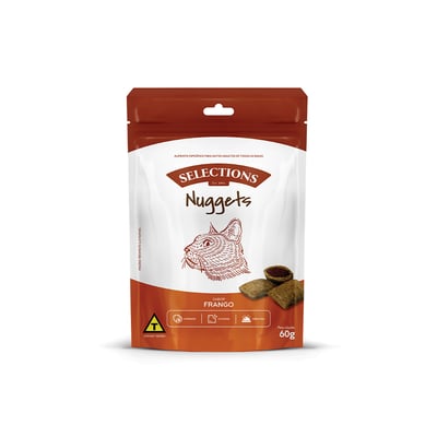 O Snack Selections Nugget Frango foi especialmente formulado para gatos, atendendo aos seus desejos por algo saboroso e crocante. Com um sabor irresistível de frango, este petisco é capaz de transformar qualquer momento em uma oportunidade de fortalecer o vínculo entre você e seu animal de estimação. O snack é recheado e oferece uma textura crocante que os gatos adoram.