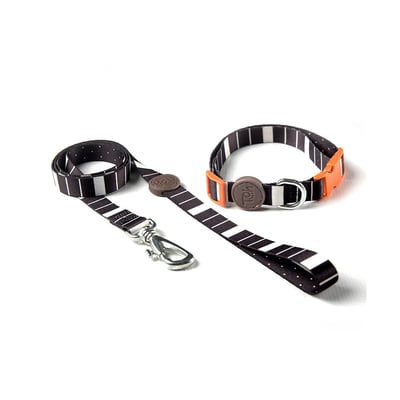 A coleira e a guia são feitas de poliéster ultra-soft, com fecho em nylon.