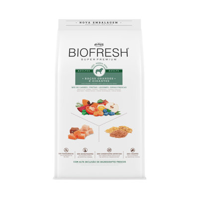 Ração seca biofresh mix de carnes, frutas, legumes, ervas frescas para cães adultos raças grandes e gigantes 15kg