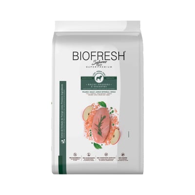 Ração seca biofresh sabores frango, maçã, arroz integral, ervas para cães adultos raças grandes e gigantes 15kg