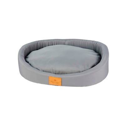 A cama é feita de poliéster, um material resistente e de fácil manutenção.