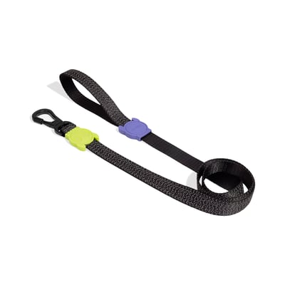 Para utilizar a Guia Zee.Dog Nox, basta fixar o mosquetão na coleira do seu cão. O mecanismo de fecho é fácil de manusear, permitindo que você rapidamente prepare seu pet para o passeio.