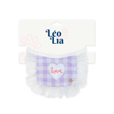 O Babador Leo E Lia foi cuidadosamente desenvolvido para ser utilizado por cães e gatos, garantindo que os momentos de alimentação sejam mais organizados e limpos. Confeccionado em tricoline 100% algodão, o babador possui uma estampa xadrez lilás que se destaca por sua suavidade e estética atraente. Os detalhes em renda branca e o bordado delicado complementam o design, fazendo deste babador um item de luxo para seu pet.