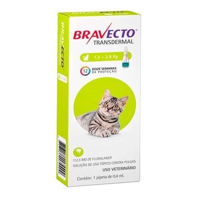 Antipulgas Bravecto Transdermal 112,5Mg Para Gatos De 1,2 A 2,8Kg - 1 Unidade - 3 ofertas encontradas