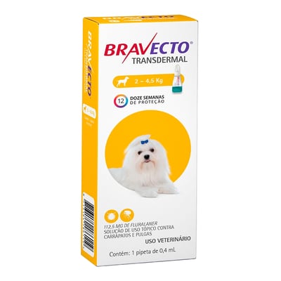 Antipulgas e carrapatos msd bravecto transdermal para cães de 2 a 4,5kg 1pip.