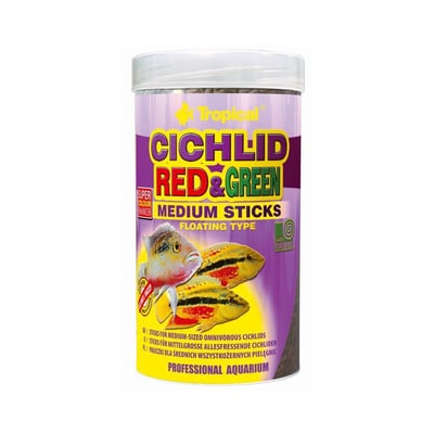 O Alimento Para Peixe Tropical Cichlids Red & Green Sticks - 90G oferece uma experiência divertida e nutritiva para os cuidadores de ciclídeos tropicais. Desenvolvido em forma de bastões flutuantes, este alimento é ideal para ciclídeos de médio porte que preferem uma dieta vegetal, sendo perfeito tanto para jovens quanto para adultos. A inclusão de spirulina platensis na composição é um diferencial significativo, pois ajuda a melhorar os processos digestivos dos peixes.