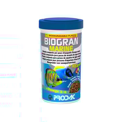 O Alimento Prodac Biogran Marine Para Peixes Marinhos - 100G é um alimento premium projetado para oferecer uma nutrição completa e equilibrada para peixes de água salgada. Ele não só promove a saúde e o crescimento dos peixes, mas também é amigável ao meio ambiente, graças à sua embalagem biodegradável.