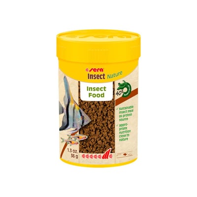 Além de ser uma excelente fonte de nutrição diária, o Alimento Sera Insect Nature pode ser usado como um complemento alimentar para peixes que necessitem de um aporte proteico extra, como aqueles em fase de reprodução ou crescimento.