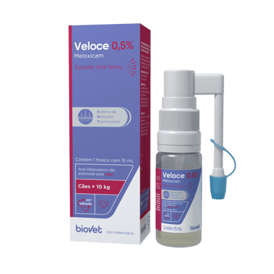 O Veloce 0,5% é uma solução oral spray de uso veterinário, indicada para cães que necessitam de alívio rápido contra condições inflamatórias. Formulado com meloxicam, um anti-inflamatório não esteroide, este produto proporciona um método eficaz e fácil de administração para os donos de pets. Com embalagem prática de 15 ml, o Veloce é perfeito para o tratamento de cães a partir de 3 meses de idade e que pesam mais de 10 kg, oferecendo conforto e bem-estar em poucas borrifadas.