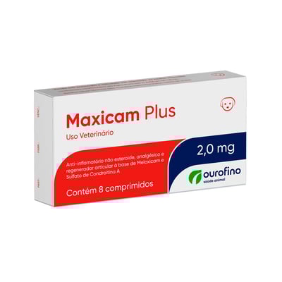 O Maxicam Plus é composto por Meloxicam, um anti-inflamatório não esteroide, e Sulfato de Condroitina A, um condroprotetor que auxilia na reparação de tecidos ósseos e cartilaginosos.