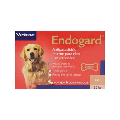 Vermífugo endogard para cães de 30kg com 6 unidades