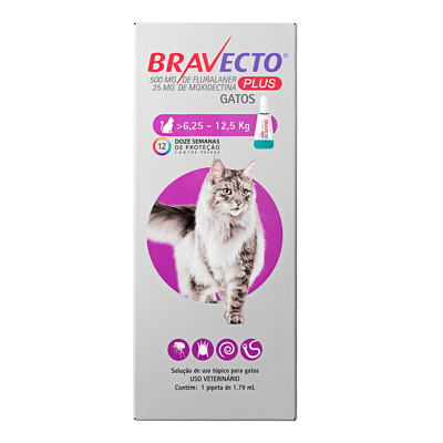 Anti pulgas bravecto plus para gatos de 6,24kg a 12,5kg 1und