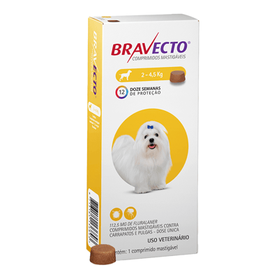 Antipulgas e carrapatos bravecto® comprimido mastigável de 112,5mg para cães de 2 a 4,5kg - msd saúde animal