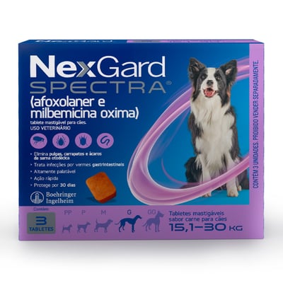 Nexgard spectra antipulgas e carrapatos para cães de 15,1 a 30kg 3 tabletes mastigáveis