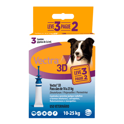 Antipulgas vectra 3d cães 10 a 25 kg ceva 3,6 ml leve 3 pague 2 - 3 pipetas