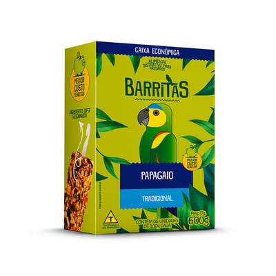 Recomenda-se ajustar a quantidade com base no tamanho e nas necessidades alimentares do seu papagaio. Em geral, uma barrita por dia pode ser suficiente, mas é importante observar o consumo e ajustar conforme necessário.