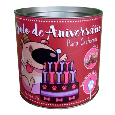 | Conteúdo | 1 bolo de 70g, lata personalizada e 1 vela formato patinha |