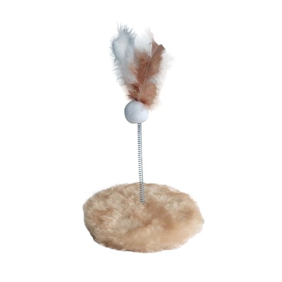 Este brinquedo arranhador foi especificamente projetado para gatos de todas as idades - de filhotes a seniores. Com um design redondo e acolchoado com tecido de pelúcia bege, ele se torna um objeto atrativo para os gatos, graças à sua textura macia. Além disso, possui elementos interativos como um pompom e uma peninha, que são irresistíveis para os felinos, proporcionando horas de diversão e estimulando o comportamento natural de caça.