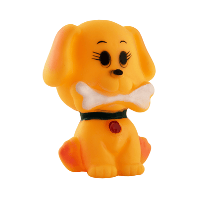 O brinquedo é feito de PVC, que é resistente e seguro para uso por cães.