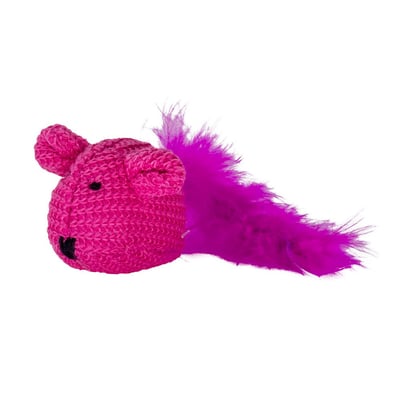 Feito com materiais de alta qualidade, o ratinho apresenta um design em lã, garantindo durabilidade e resistência às garras e mordidas dos gatos. A combinação de cores vibrantes como roxo e rosa também ajuda a capturar a atenção dos pets, tornando-o ainda mais atrativo.