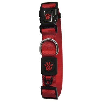 Com um design moderno e a cor vermelha vibrante, esta coleira se destaca, tornando seu cão facilmente identificável. Além de estilosa, a coleira é equipada com fivelas plásticas robustas, que são de fácil fechamento e abertura, o que facilita o manuseio no dia a dia.