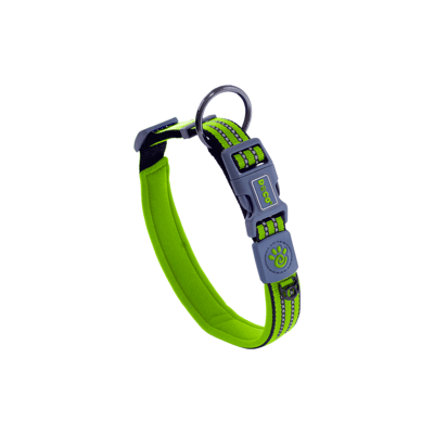 Além de sua funcionalidade, a coleira possui um design vibrante na cor verde, que confere estilo ao seu pet, tornando os passeios ainda mais alegres. A combinação de fivelas plásticas resistentes e uma argola de metal de alta qualidade assegura que a guia esteja sempre firmemente acoplada, prevenindo acidentes indesejados.