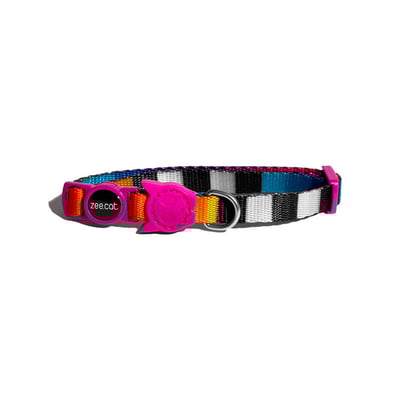 A Coleira Zee.Cat Prisma Para Gatos é especialmente indicada para gatos de todas as idades, desde filhotes até adultos e seniores. A coleira é projetada com um fecho de segurança breakaway, que se abre automaticamente caso o seu gato se enrosque em algum lugar, prevenindo acidentes e garantindo a segurança do seu bichano. A tira da coleira é feita de poliéster estampado com tecnologia heat-transfer teteron, que assegura uma estampa durável e vibrante.