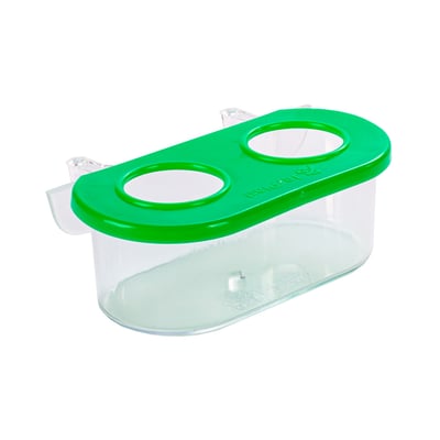 Comedouro jel plast pet piu 2 furos com gancho cristal verde para pássaros - 100ml