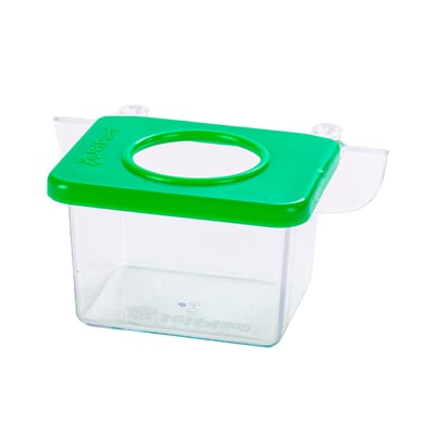 Comedouro jel plast pet piu 1 furo com gancho cristal verde para pássaros - 30ml