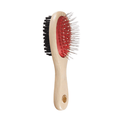A Escova Dupla De Madeira - Cerdas Especiais G Para Cachorros é ideal para quem procura uma escova versátil e durável. Com um lado equipado com cerdas longas e macias, ela é perfeita para alisar e dar brilho, enquanto o lado com pinos metálicos arredondados é eficaz para desembaraçar e remover nós. Esta escova é adequada para todos os tipos de pelagem, desde as mais longas até as mais curtas.