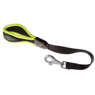 - Sempre inspeccione o mosquetão e o estado do material antes de cada uso para garantir a segurança do seu cão.