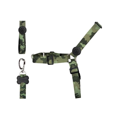 O design camuflado não só proporciona um visual moderno, como também ajuda a reduzir a ansiedade do cão durante os passeios, contribuindo para uma experiência mais agradável.
