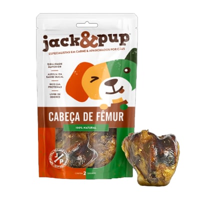Os petiscos Jack&Pup são desenvolvidos para proporcionar diversão e saúde ao seu cão. Cada unidade é feita com a cabeça de fêmur suíno desidratada, garantindo uma textura crocante e resistente que mantém seu cão entretido por longos períodos. A embalagem contém duas unidades, sendo ideal para uma recompensa diária ou para uso em sessões de adestramento.