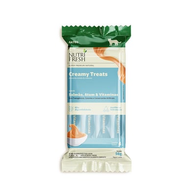 Petisco cremoso nutrifresh creamy treats para gatos salmão, atum e vitaminas 56 g