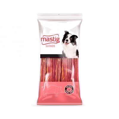 O Petisco Mastig Filezinho Palito Suíno é ideal para cães de todas as idades e portes. Seja para cães filhotes ou seniores, este produto é indicado graças à sua fórmula cuidadosamente desenvolvida. Produzido com carne suína de alta qualidade, este petisco não contém corantes nem ingredientes transgênicos, assegurando uma experiência natural e saudável para o seu pet.